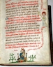 | Late fifteenth-century Prayerbook in Latin. The lower margin has a figure playing a harp - King David. The scroll reads: 'Astitit regina a dextris tuis in vestitu deaurato' (Ps 44:10). The right hand margin has a standing figure of a nimbed Bernard in a white cowl carrying a book and a crozier and identified by the inscription 'b'nar'. |